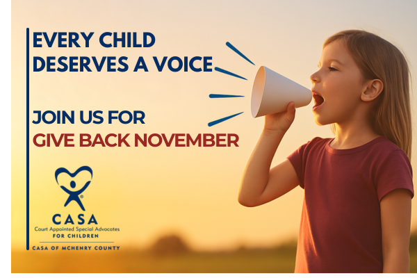 Give Back November: Every Child Deserves a Voice Every child deserves someone to stand by them—to listen, to show up, and to speak up when they can’t.At CASA of McHenry County, that’s what our volunteers do every single day. During Give Back November, we’re asking our community to come together…